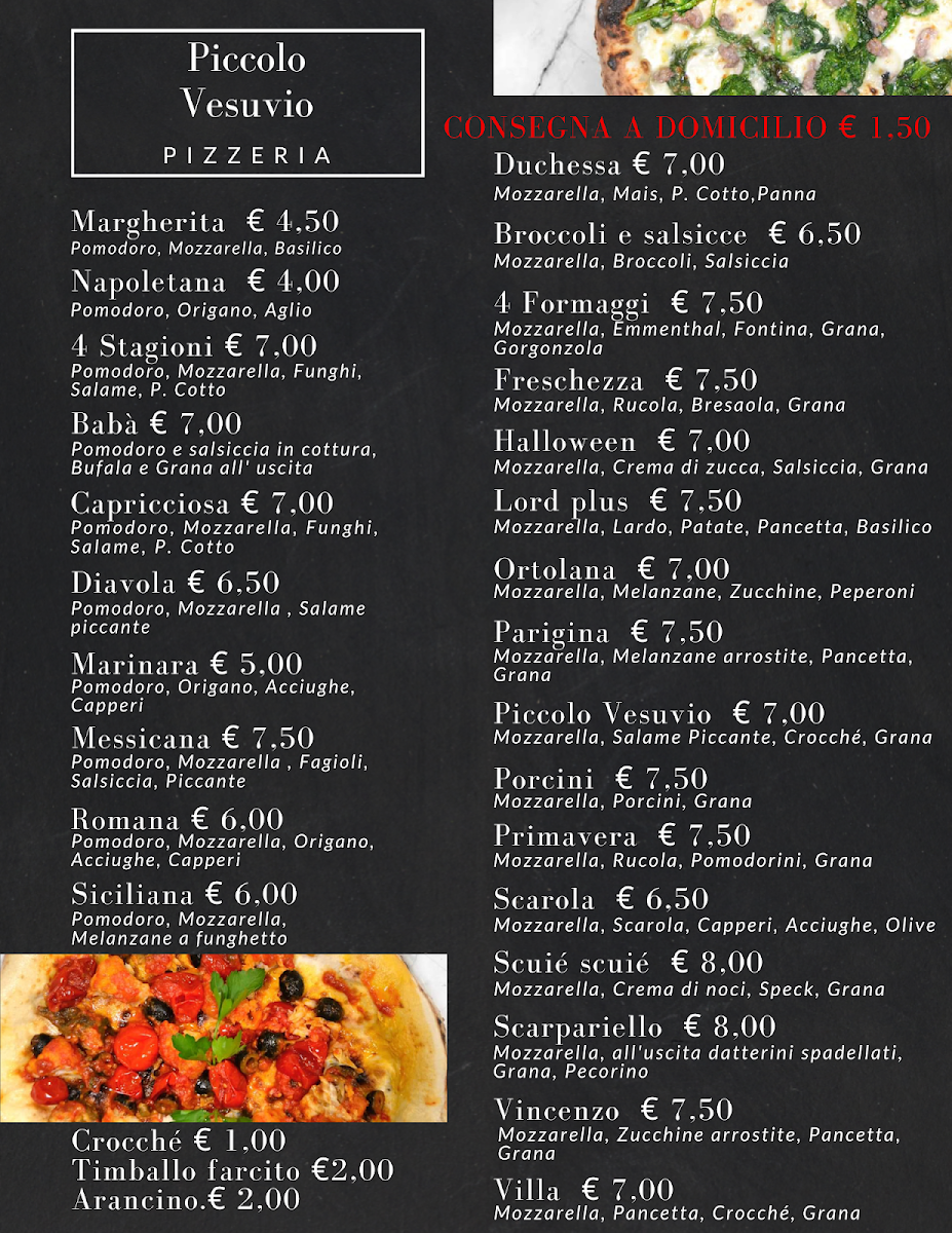 The menu at New Piccolo Vesuvio offers a delightful selection of traditional Italian flavors with a modern twist, making it a standout choice in Cava de' Tirreni. Their dishes are crafted with fresh, high-quality ingredients that showcase the essence of Italian cuisine. A perfect starter to any meal is the Birra, a refreshing beer that pairs wonderfully with the various antipasti options. For a light and flavorful dish, the Bufalina pizza is a must-try, featuring rich buffalo mozzarella and the perfect balance of toppings. The restaurant also excels in its vegetable-based offerings, such as the Carpaccio Di Verdure Grigliate Con Focaccia, a delicate grilled vegetable carpaccio served with crispy focaccia that brings out the natural sweetness of the vegetables. As for the classic Italian comfort food, the Parmigiana stands out as a hearty and satisfying choice, beautifully layered with eggplant, cheese, and rich tomato sauce. Whether you're indulging in a pizza, enjoying a fresh vegetable dish, or savoring a comforting classic, New Piccolo Vesuvio’s menu promises a memorable dining experience filled with authentic flavors.